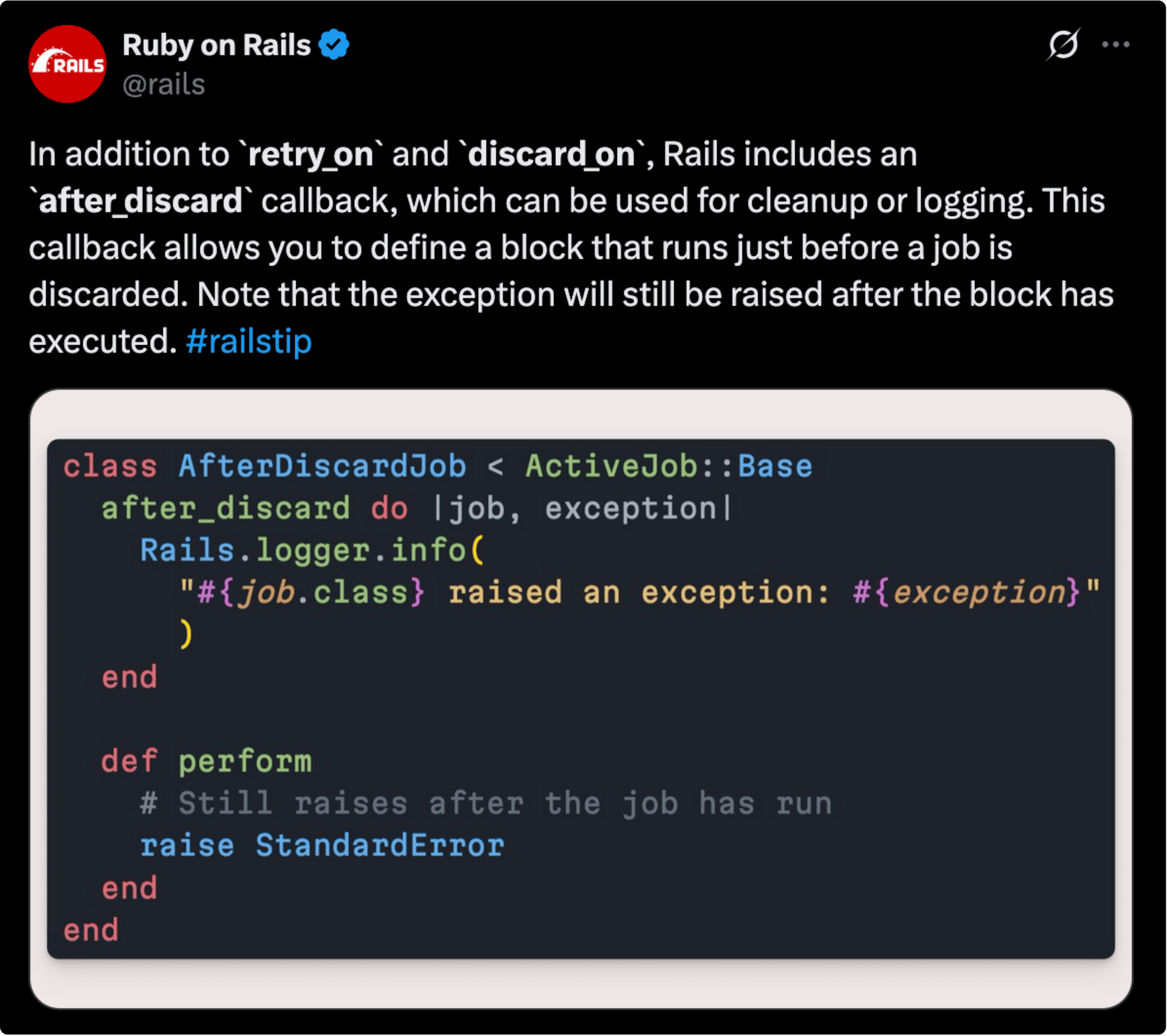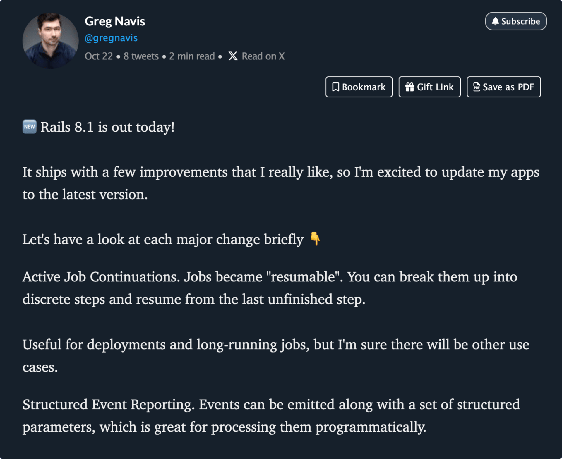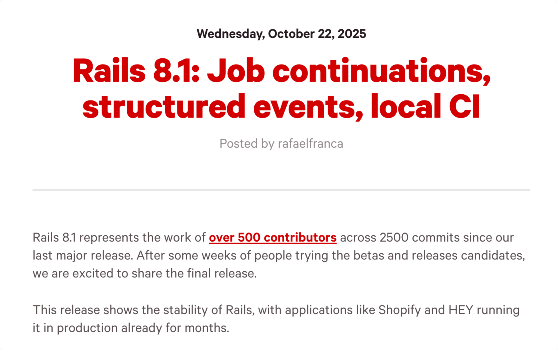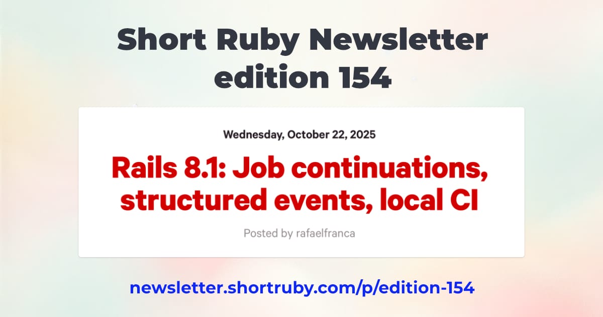 π This Week in Rails published a new edition β Rails 8.1: Job continuations, structured events, local CI