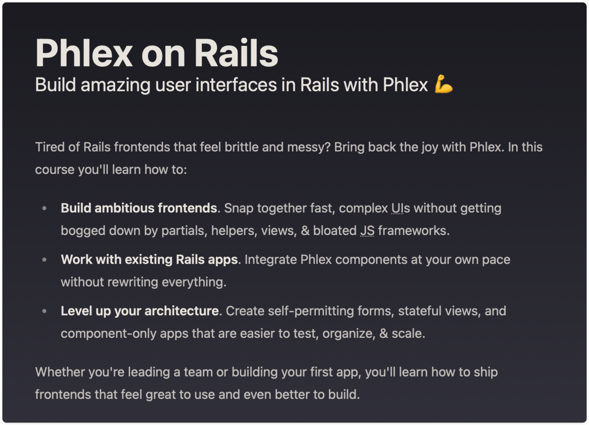 π Brad Gessler launched Phlex on Rails course is completed and launched