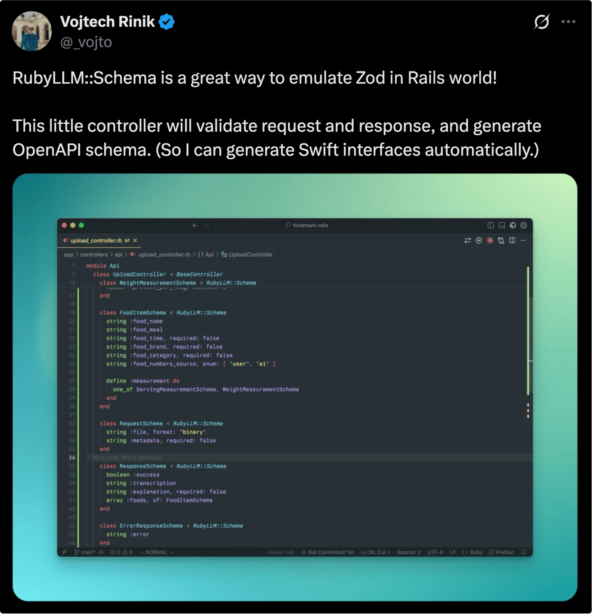 οΈπ» Vojtech Rinik shared a code sample of a controller that is responsible to validate request and response and generate OpenAPI schema