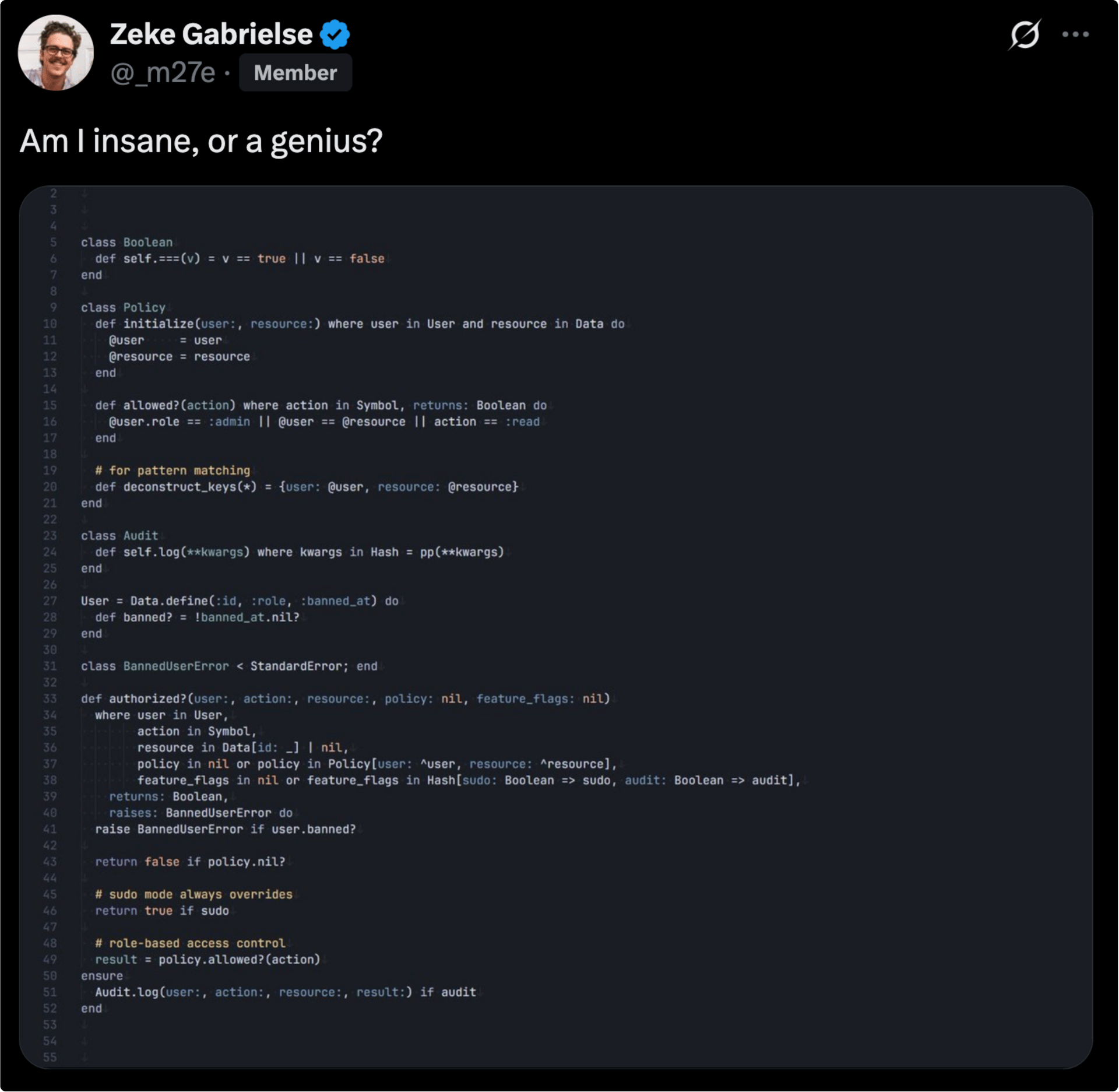 οΈπ» Zeke Gabrielse showed a code that playing with design to implement static typing: