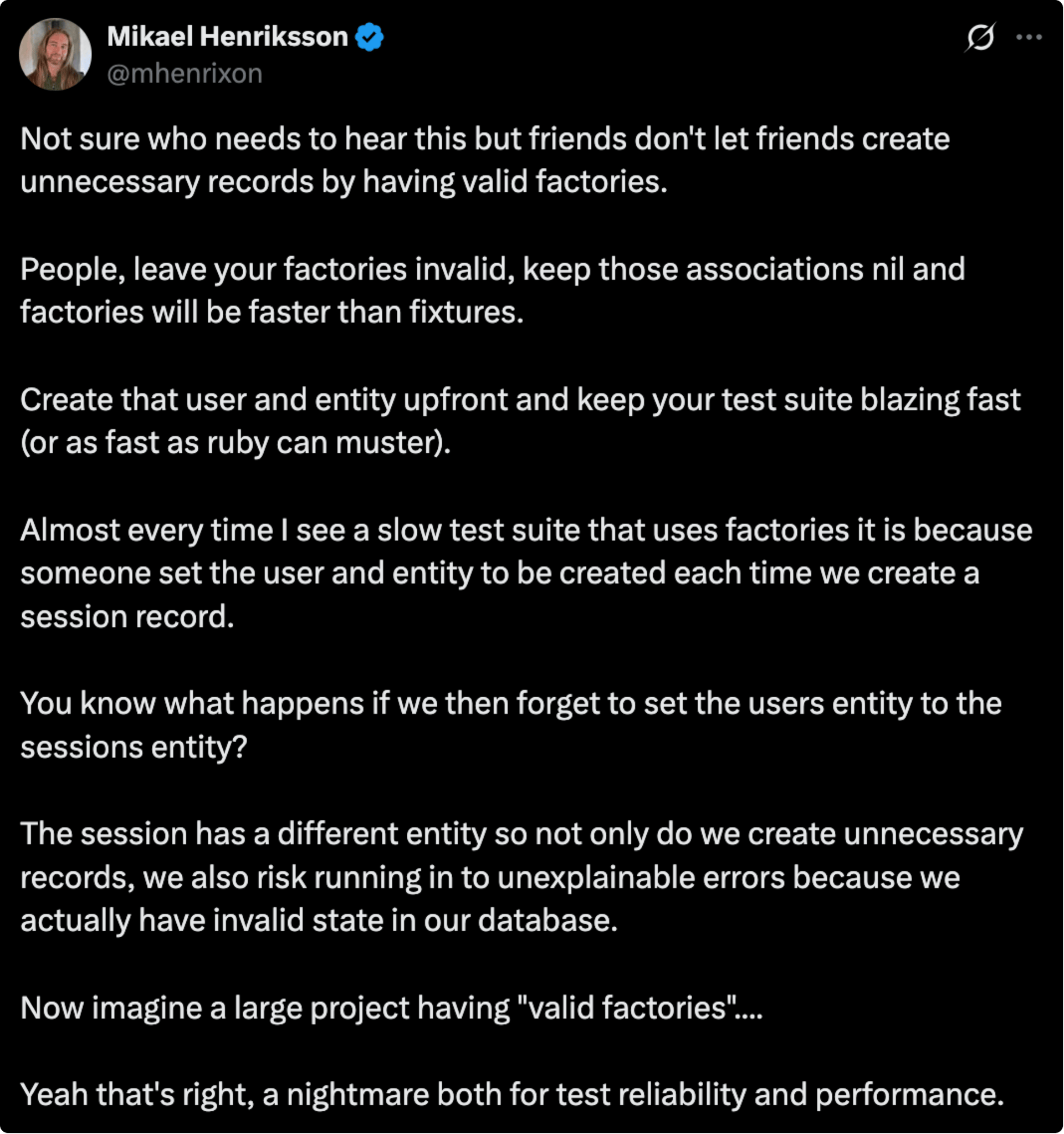 οΈπ» Mika Henriksson adviced us about avoiding unnecessary database records in Rails tests1