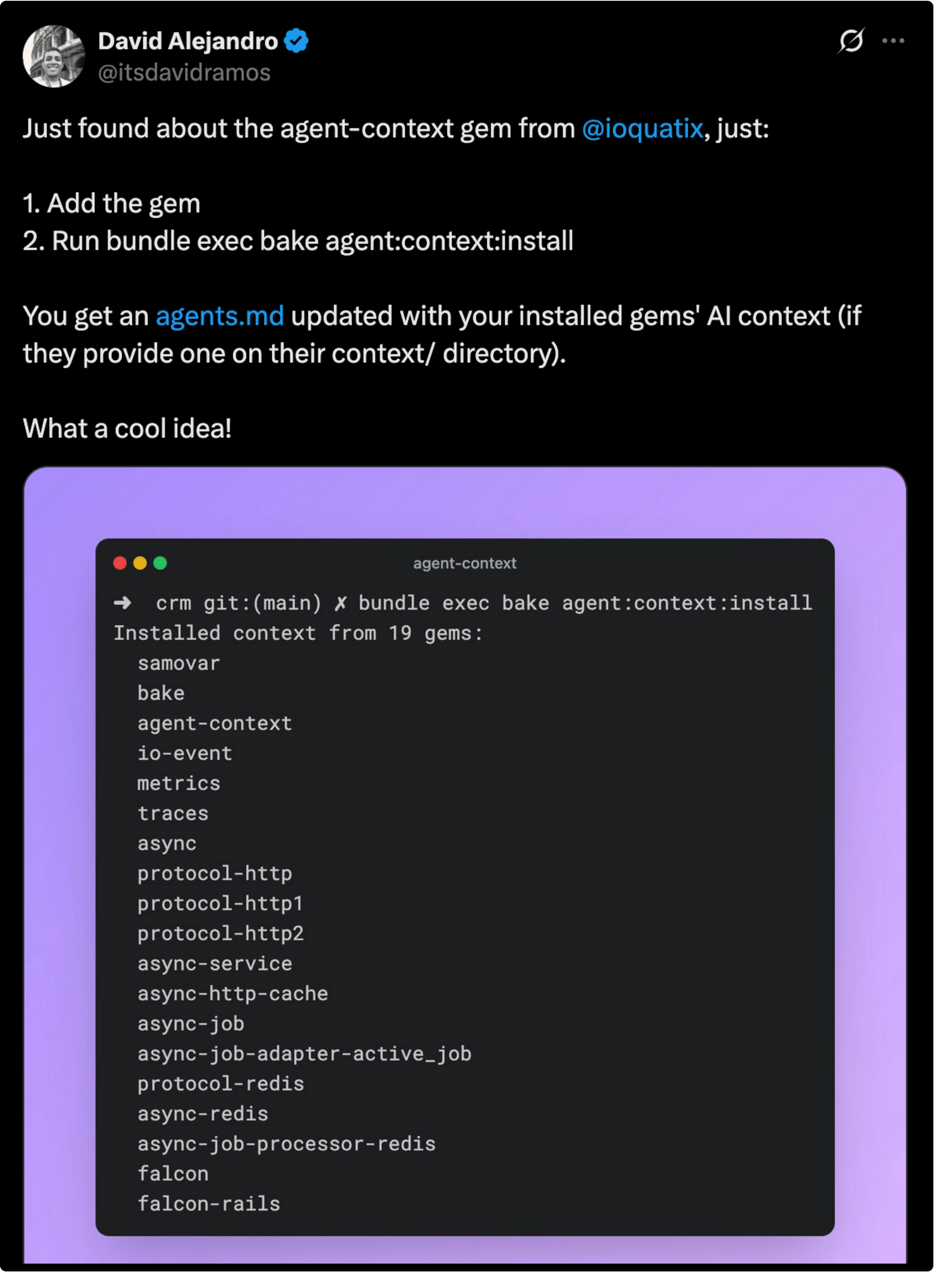οΈπ David Alejandro shared how you can use the agent-context gem