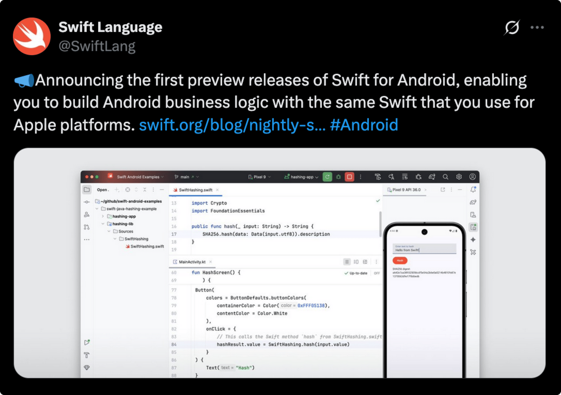 π€ Swift Language announced Swift for Android, and this could be interesting news for Hotwire Native