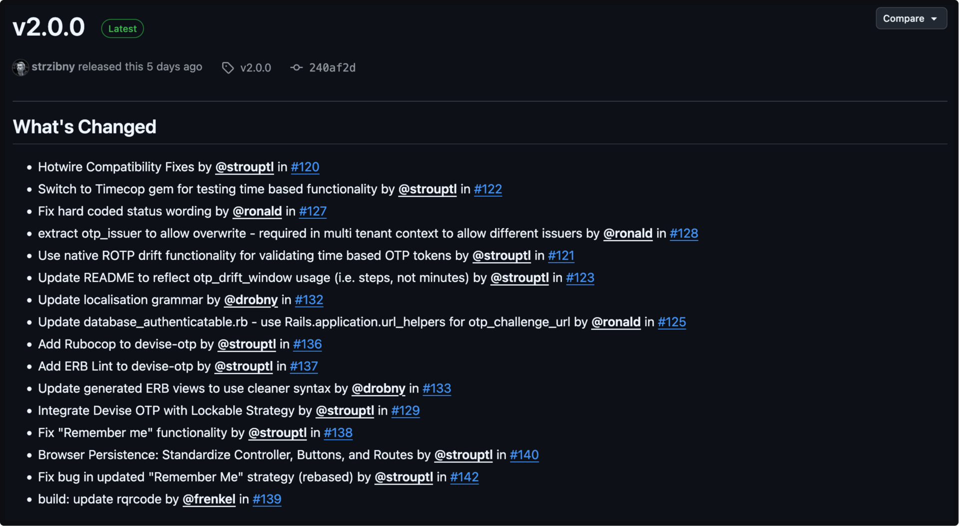 π§° Josef Strzibny announced a new version of devise-otp - βTwo Factors authentication for Devise using Time Based OTP/rfc6238 tokensβ