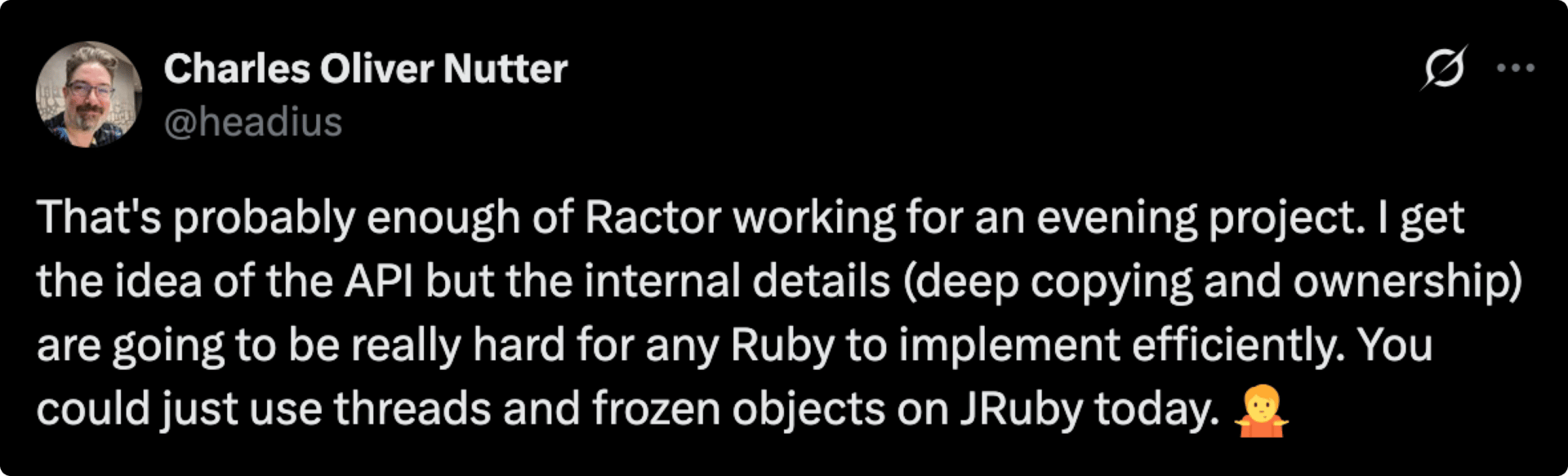 οΈπ» Charles Oliver Nutter shared that you can use threads and frozen objects on JRuby