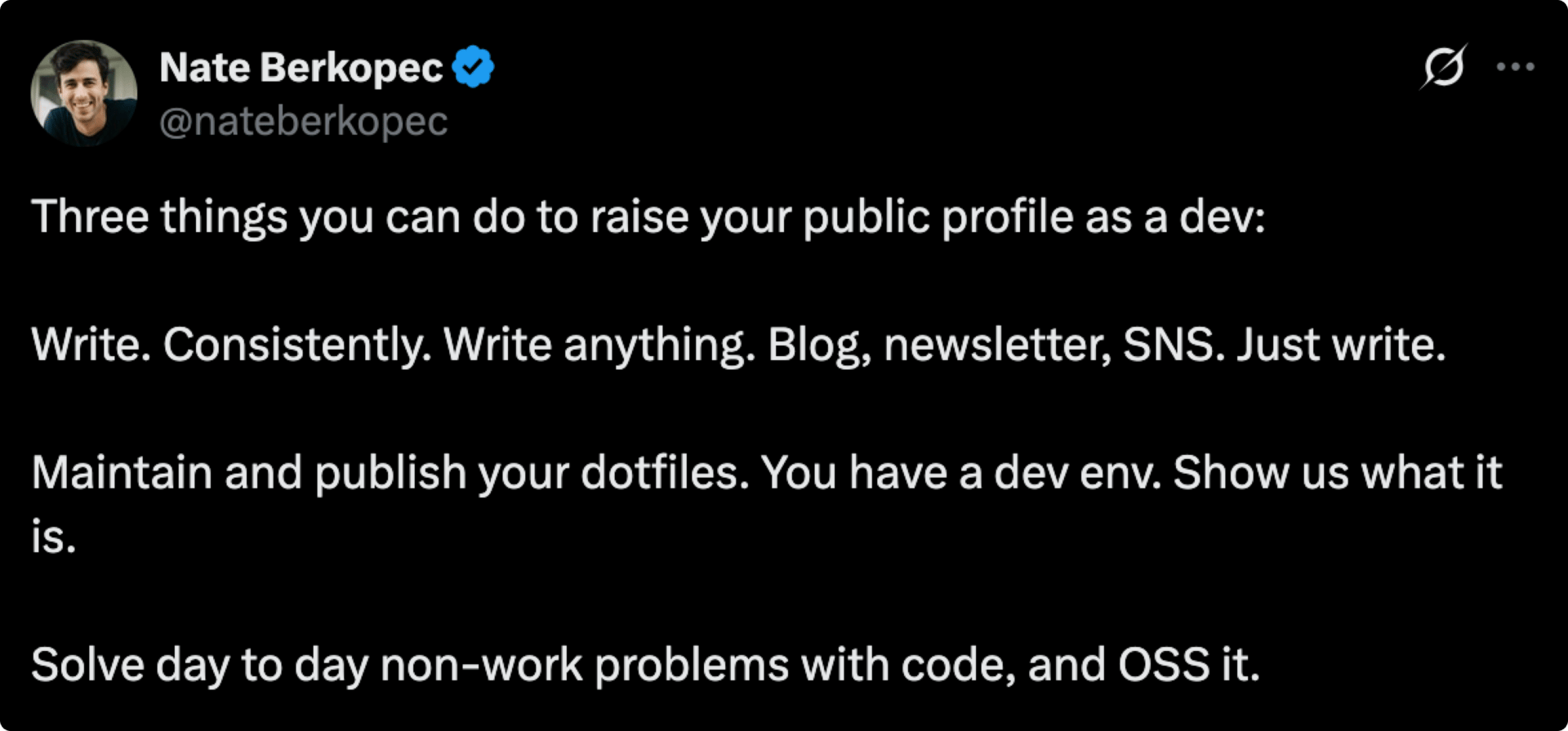 π€ Nate Berkopec shared how to improve your public profile as a developer