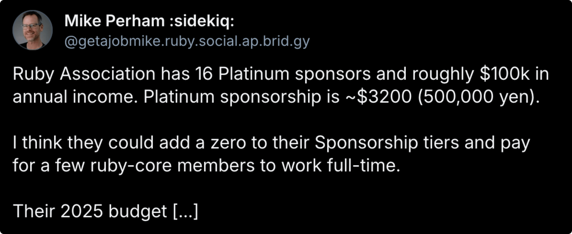 π‘ Mike Perham shared some insights about the sponsors of Ruby Association