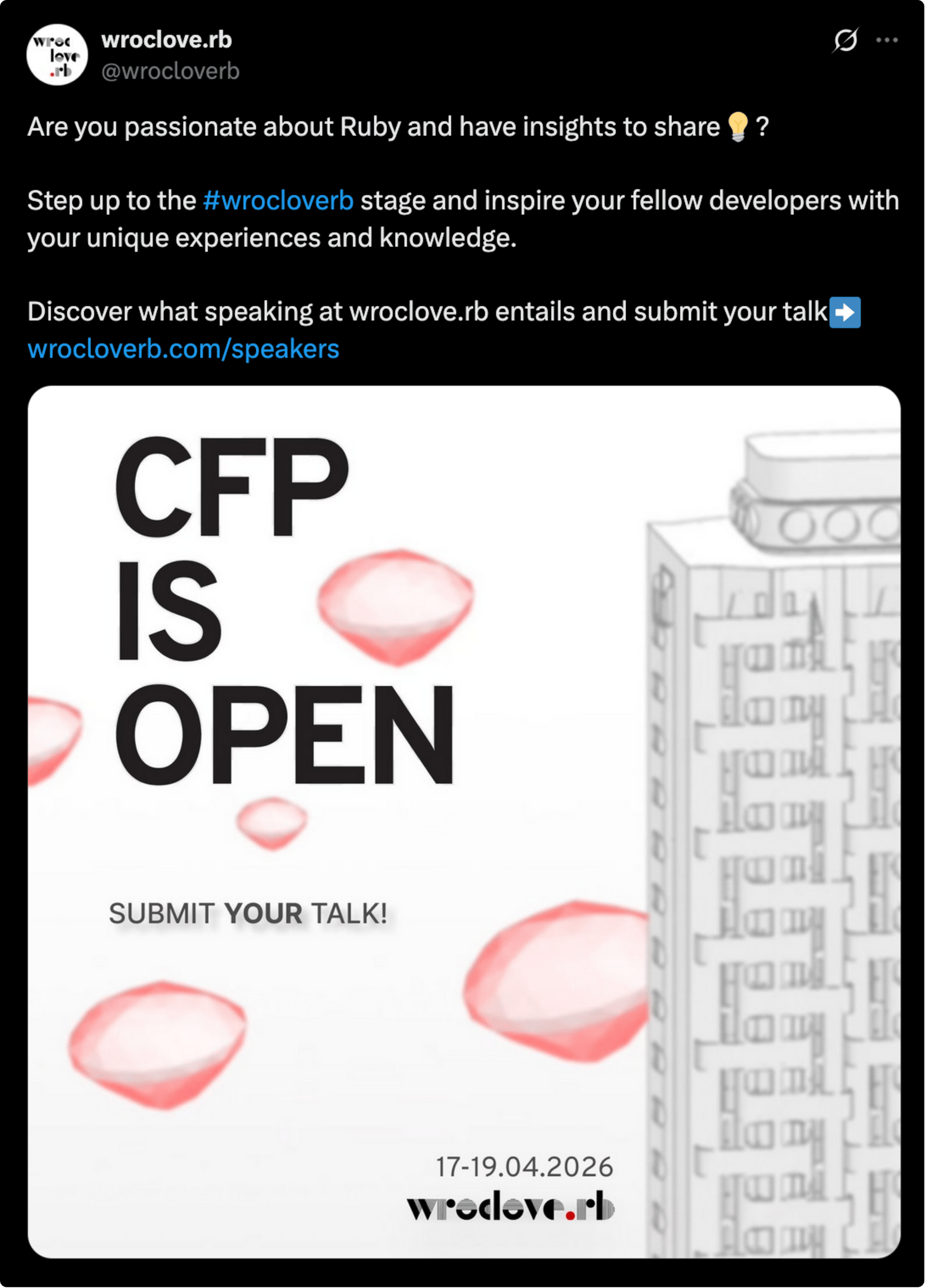 π Wroclove.Rb is looking for speakers for their next yearβs event. If youβre interested, submit your talk here β CFP 2026