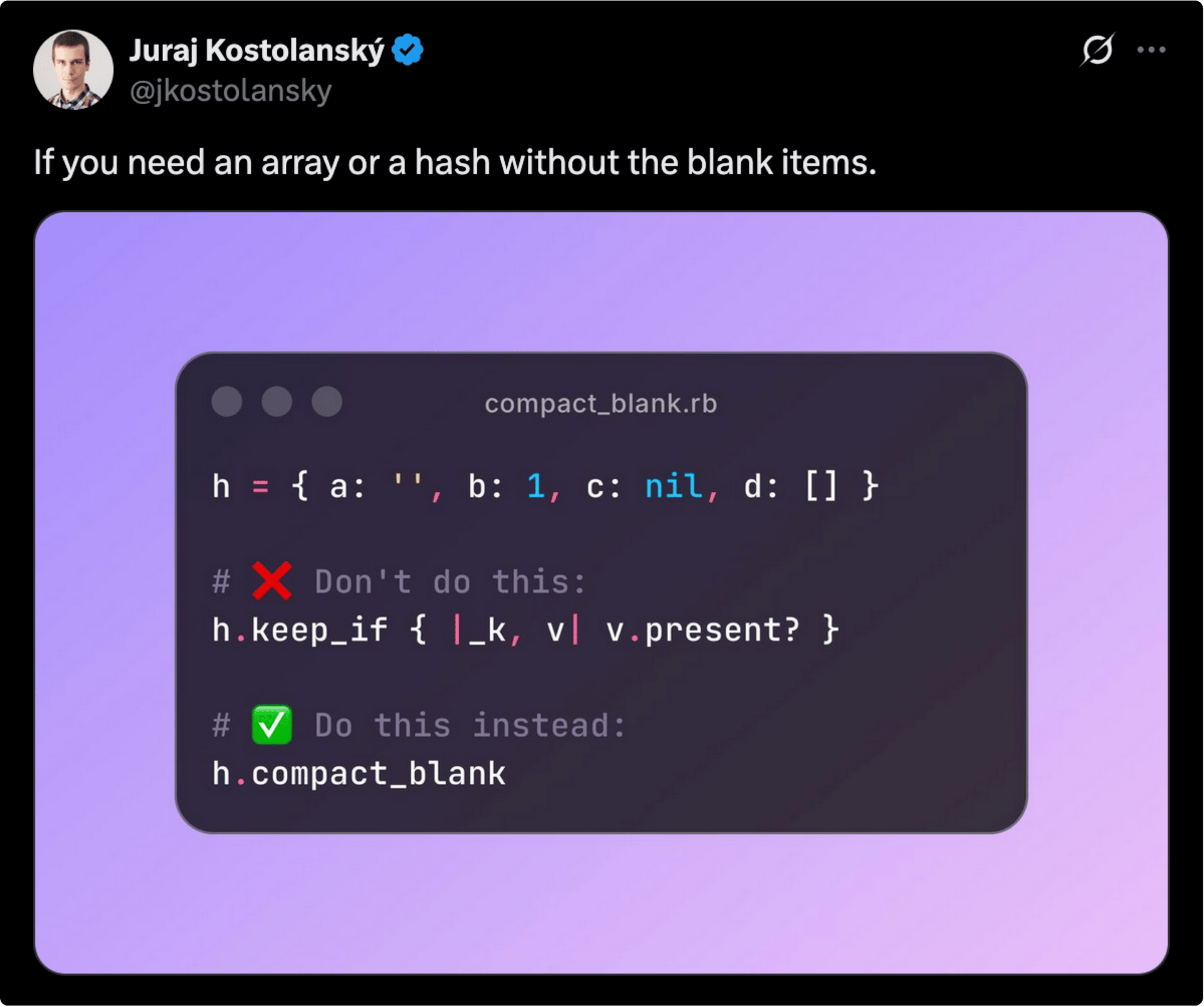 οΈπ» Juraj KostolanskΓ½ posted a code sample on how to have an array or hash without blank items