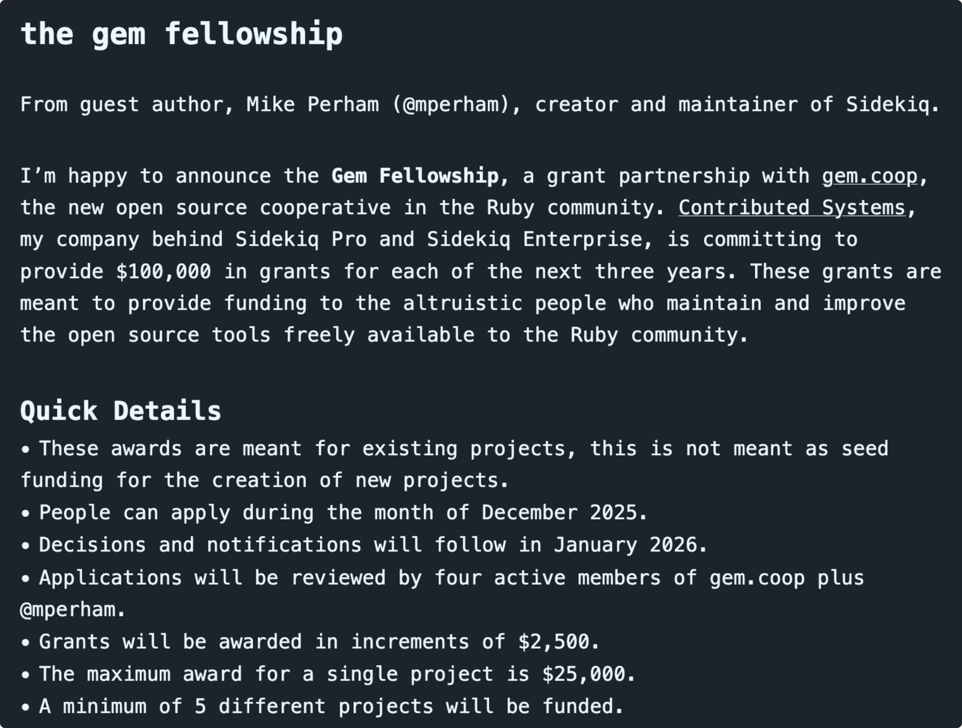 π Ruby On Rails published a new edition β This Week in Rails: November 21, 2025