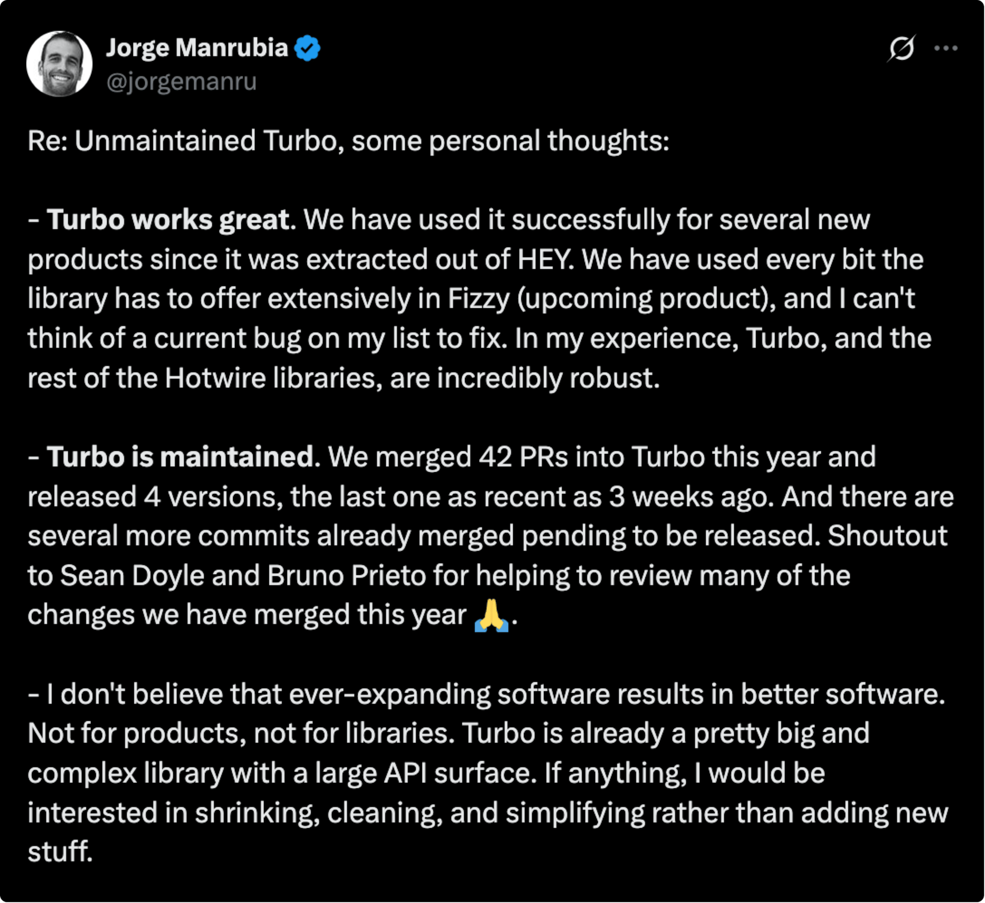 οΈποΈ Jorge Manrubia shared some thoughts on Turbo. Here is just a part of his post, to get all the details, please read the full thread