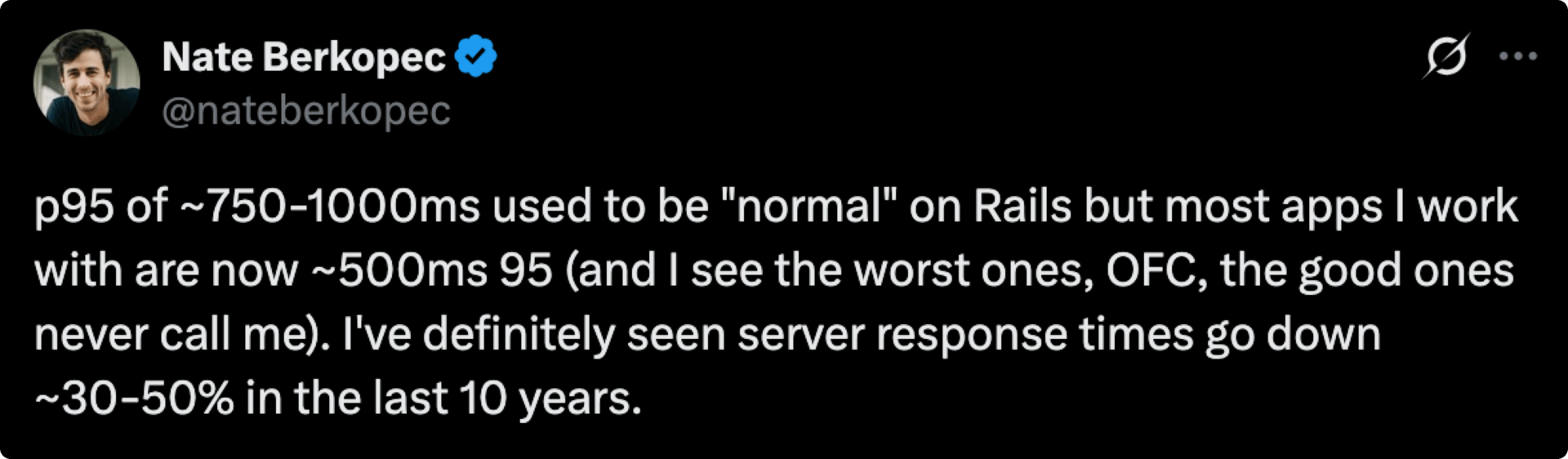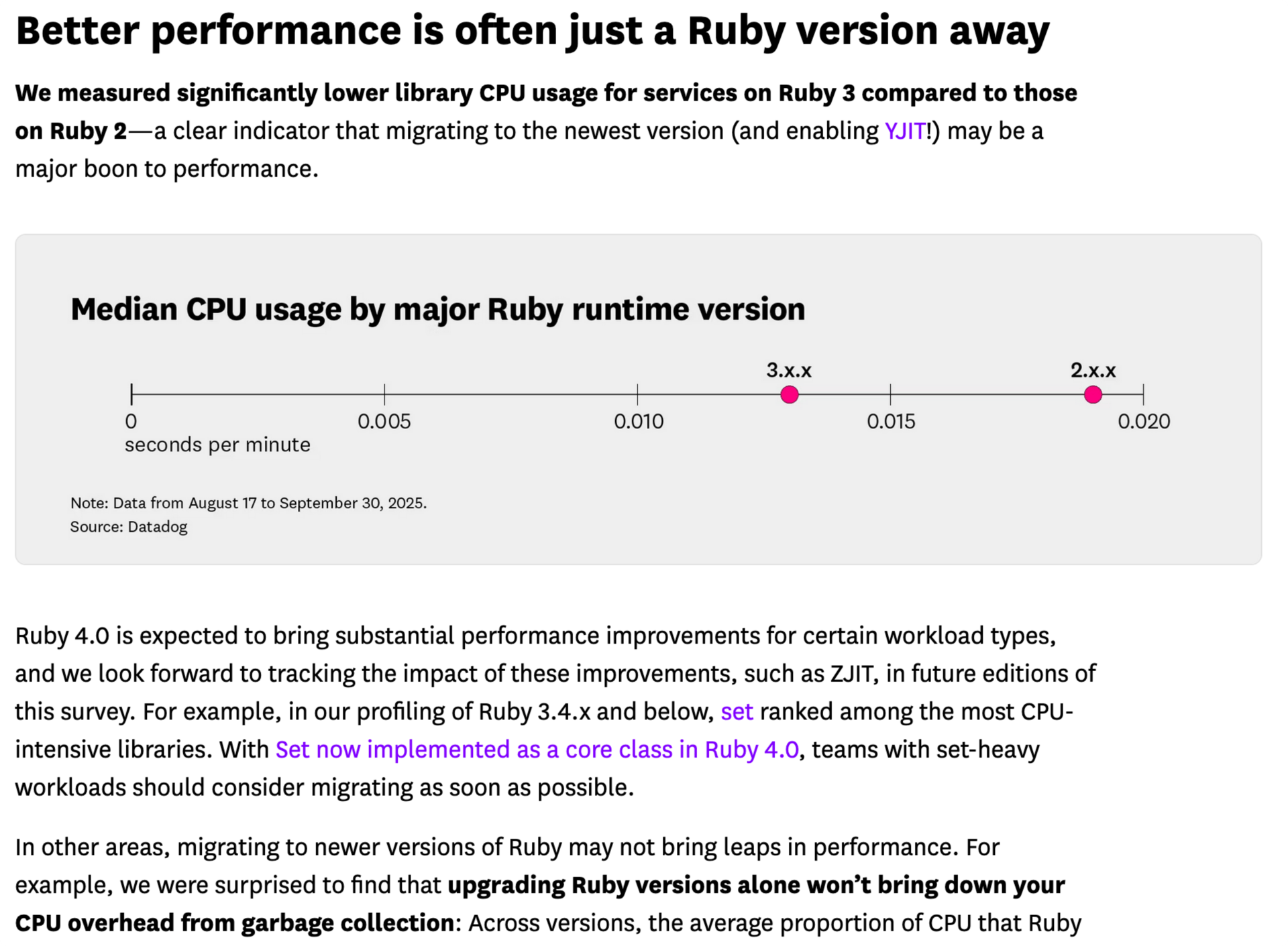 ποΈ Ivo Anjo shared a blog post about their effort at Datadog to optimize Ruby performance. Hereβs the blog post for more detailed insights β Optimizing Ruby performance: Observations from thousands of real-world services