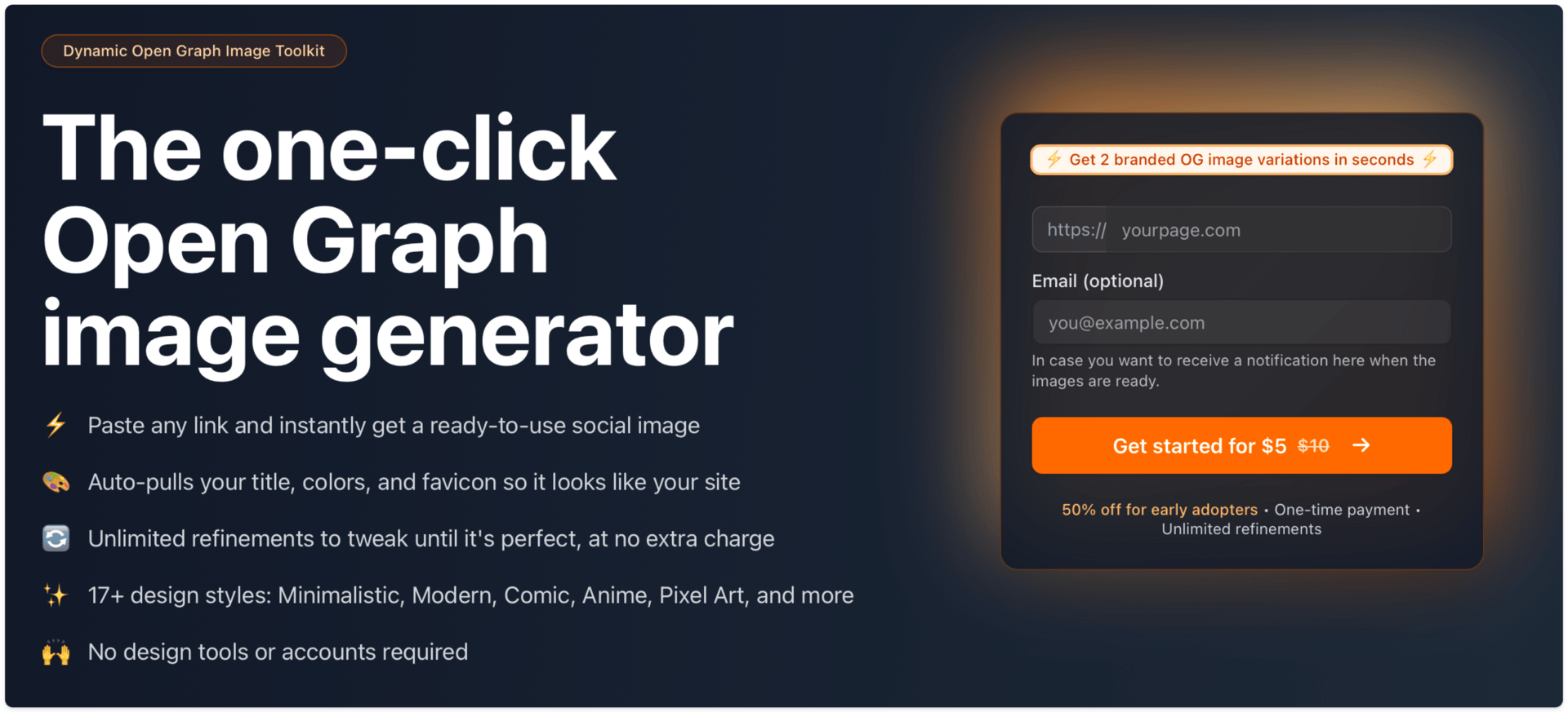 π Raul Popadineti launched their project OGPilot.com - The one-click Open Graph image generator