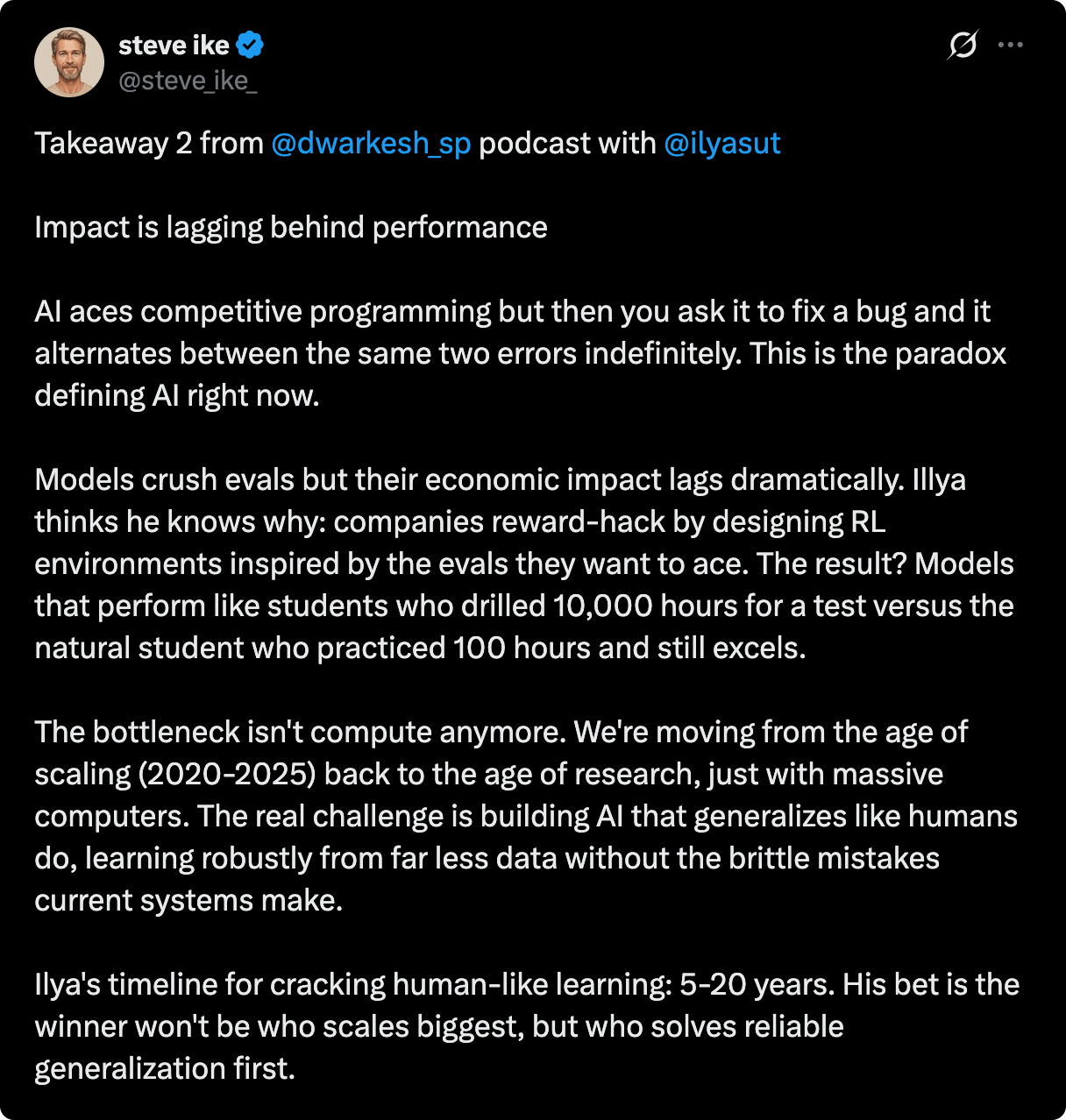π€ Steve Ike shared a takeaway from Ilya Sutskever podcast: ON THE FRONTIER OF AI