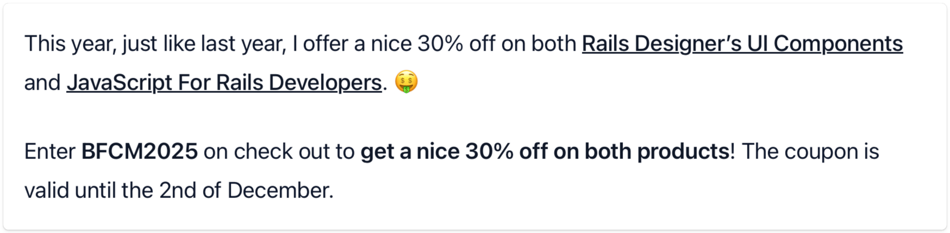 πΈ Rails Designer shared a deal about Black Friday/Cyber Monday deal 2025