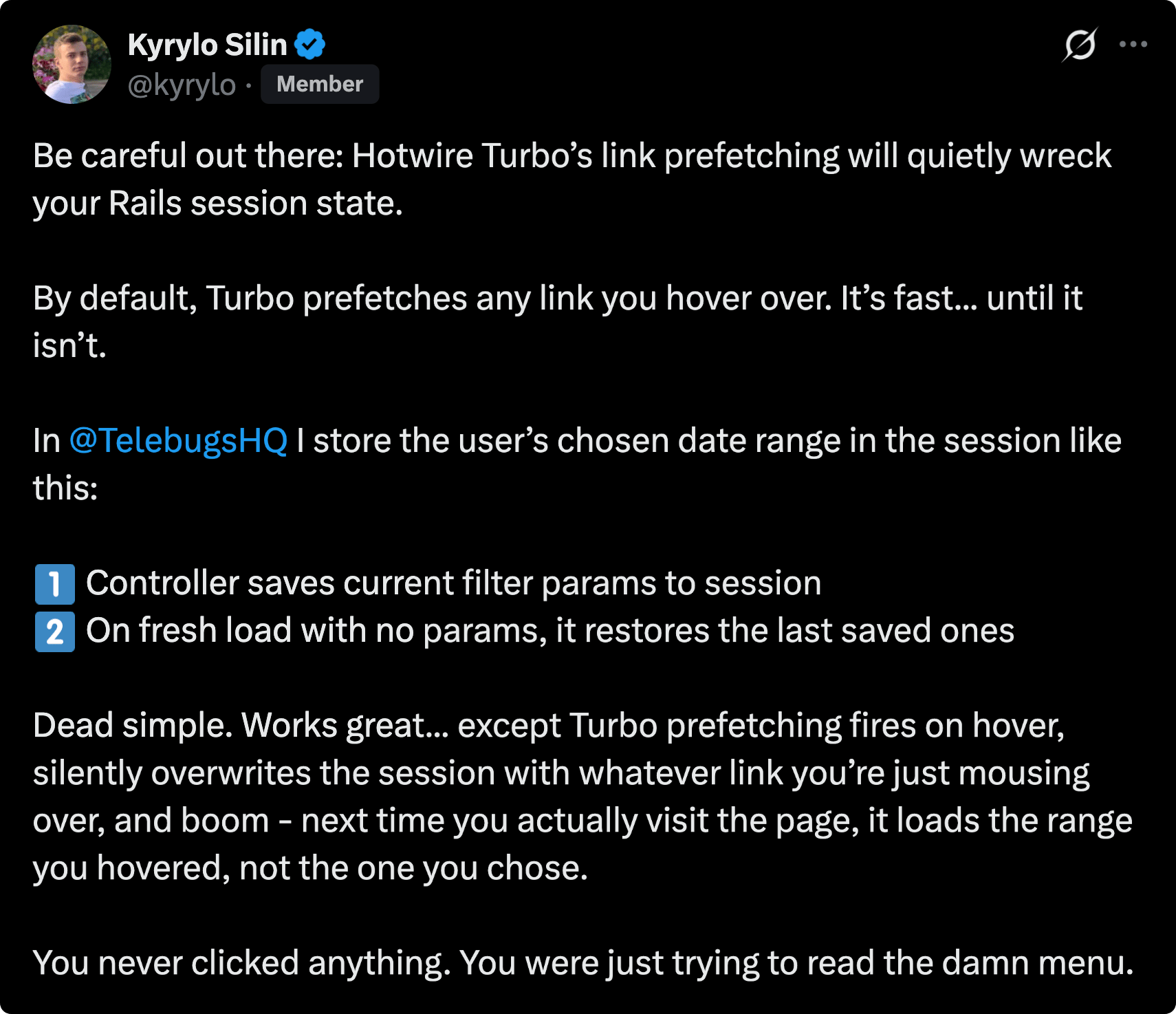 οΈπ Kyrylo Silin presented the side effects of Hotwire Turboβs link prefetching