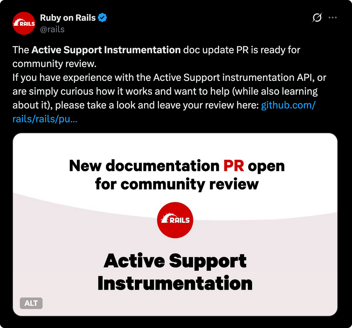 π‘ Ruby On Rails announced a new documentation PR β [RF Docs] Active Support Instrumentation