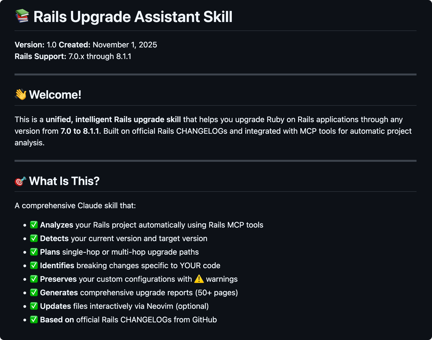 π Mario Alberto ChΓ‘vez announced a Ruby on Rails skill β rails-upgrade-skill - βClaude Skill to upgrade a Rails applicationβ
