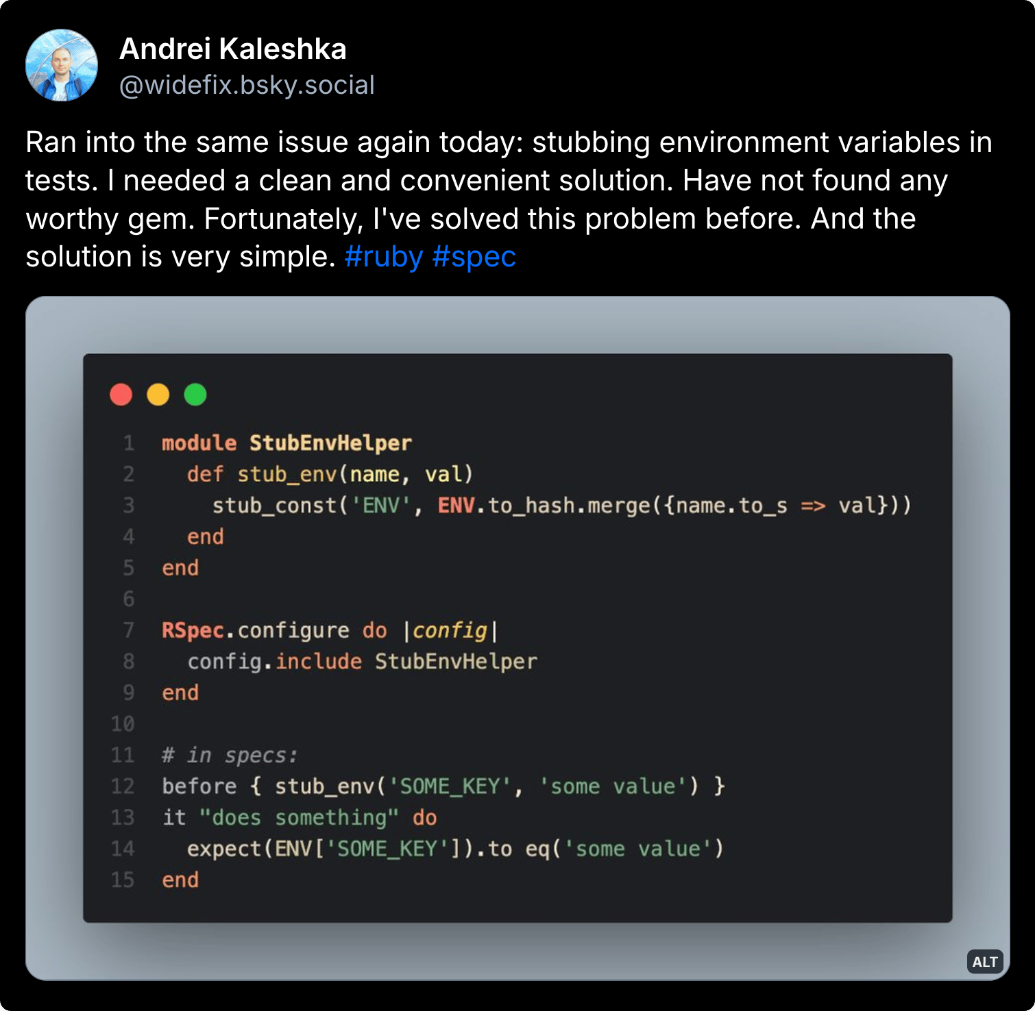 οΈοΈπ» Andrei Kaleshka showed how to stub environment variables in tests