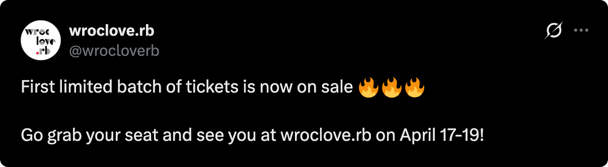 π Wroclove.Rb started ticket sales for next yearβs event. If youβre interested, grab a ticket from here β wroclove.rb 2026