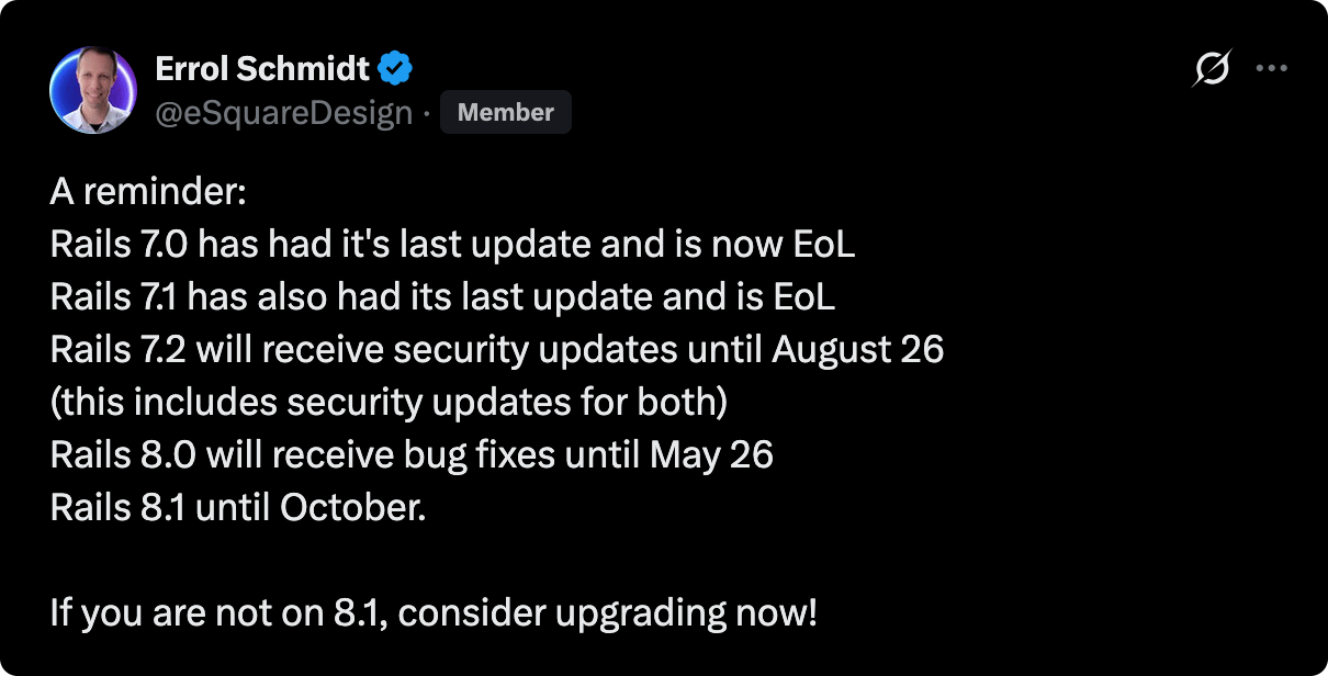 οΈπ Errol Schmidt shared some updates on various Rails versions