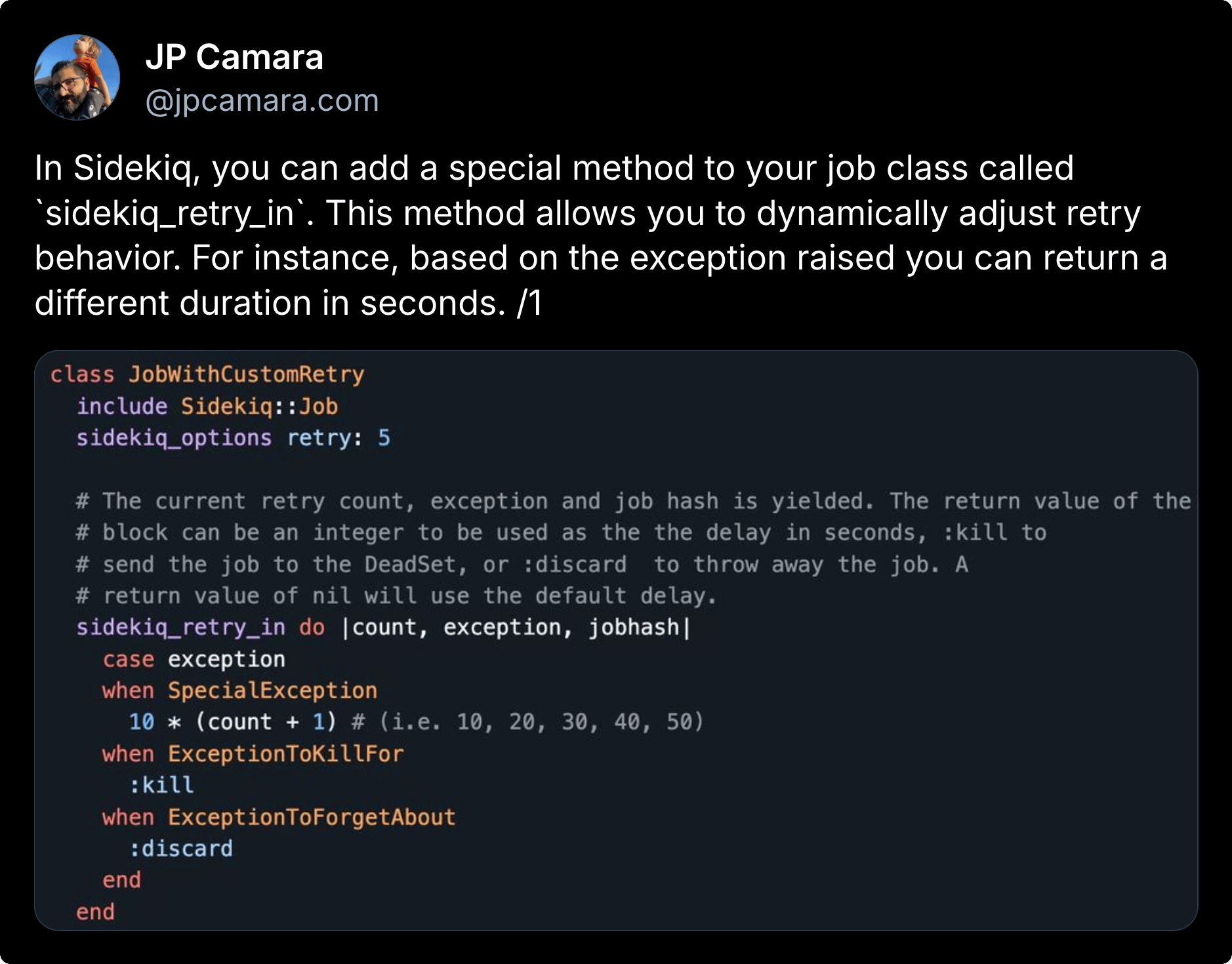 οΈπ» JP Camara showed how to dinamically adjust retry behavior in Sidekiq