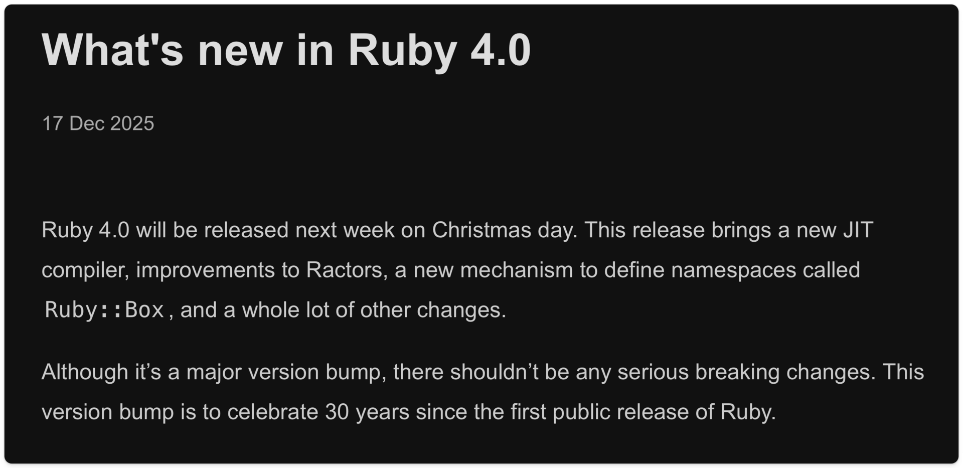 π Yui Naruse announced a new Ruby version β Ruby 4.0.0 preview3