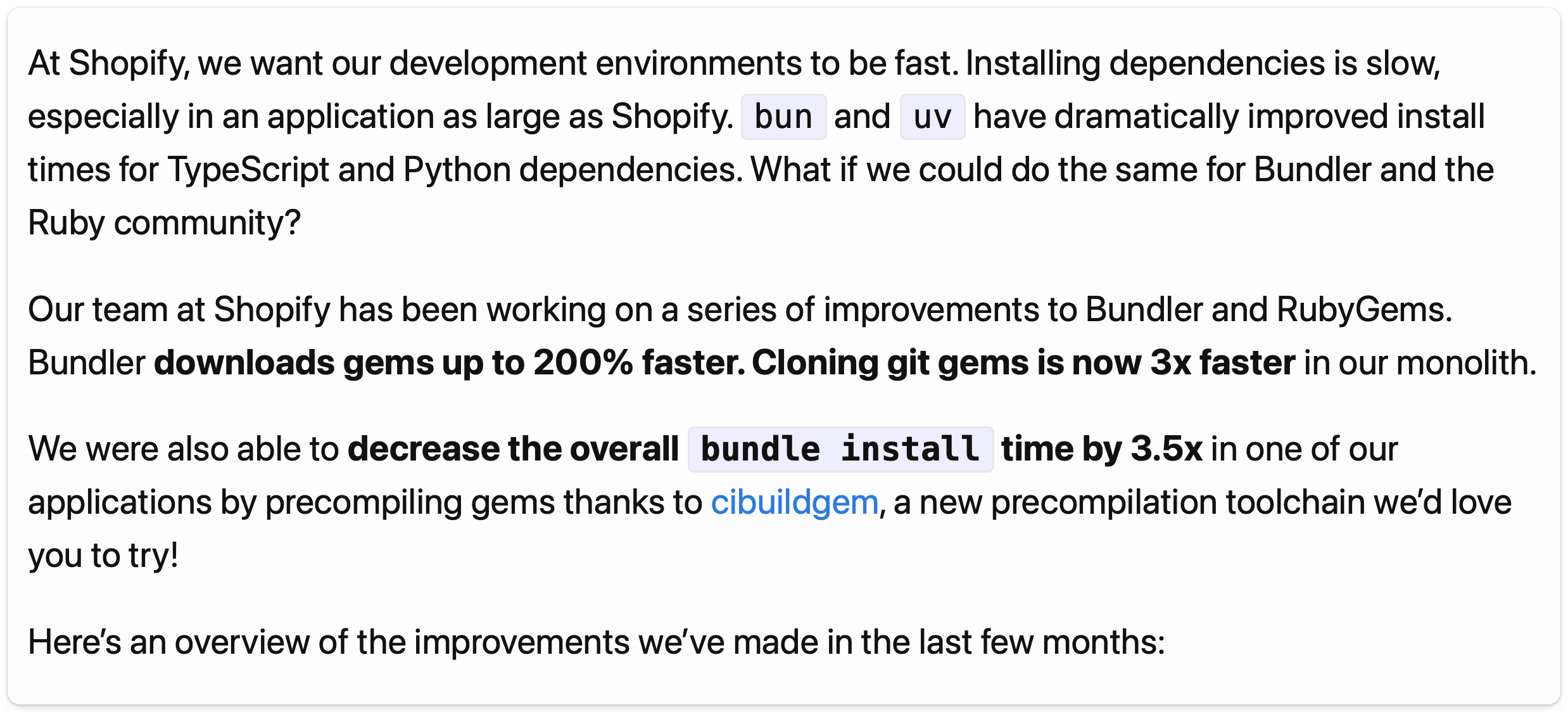 π Ruby Weekly published a new edition β Shopify's push to make Bundler and RubyGems faster