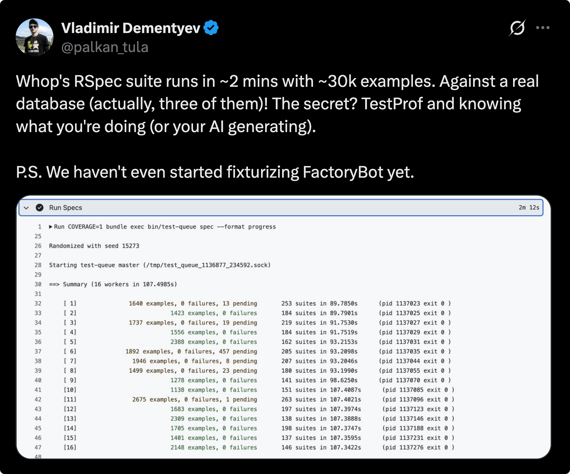 οΈποΈ Vladimir Dementyev shared some insights about Whopβs RSpec test suite