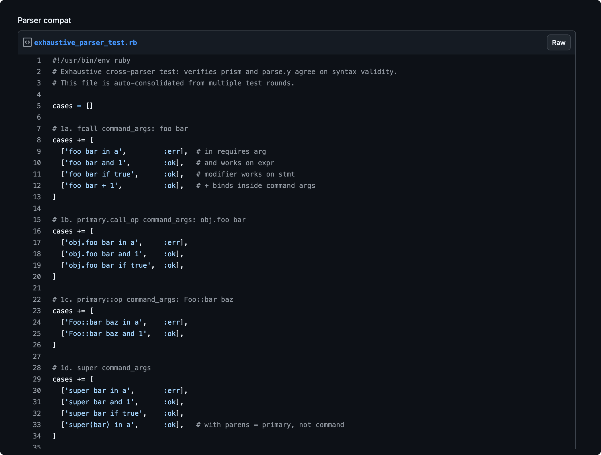 οΈπ» Kevin Newton a code sample with some parser tests that shows a lot of interesting things about Ruby syntax: