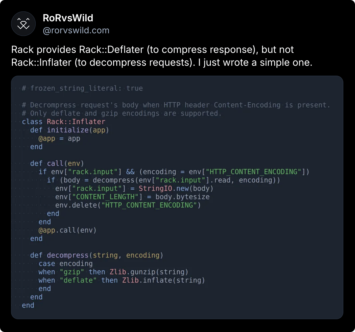 οΈπ» οΈRoRvsWild shared a code sample a custom made Rack::Inflater