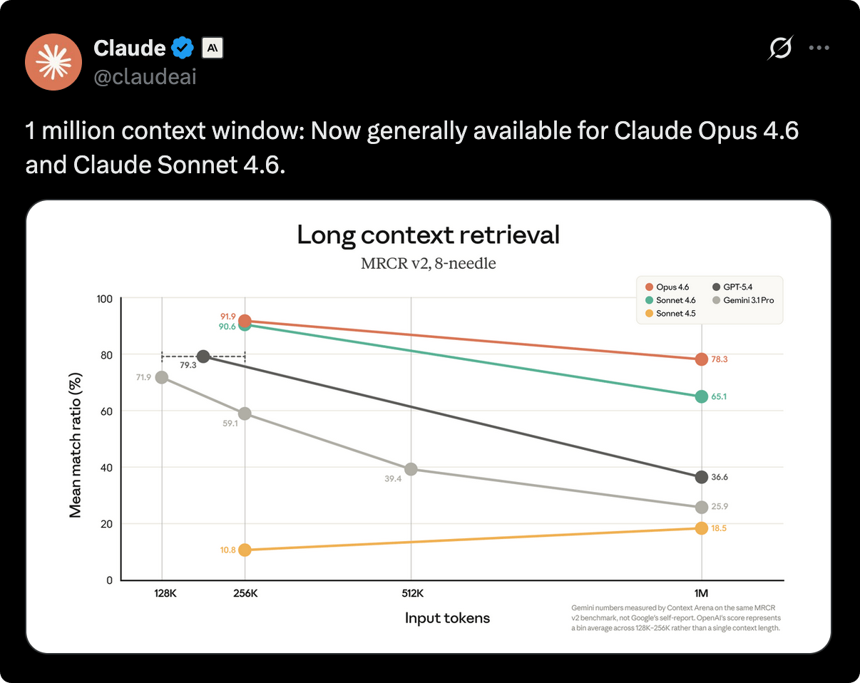 π€ Claude increased the context window to 1 million for Claude Opus and Sonnet
