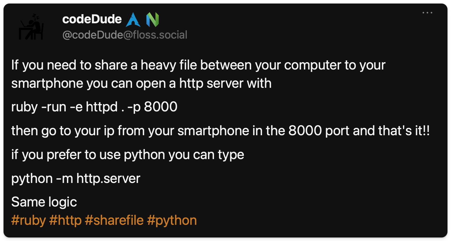 π» Code Dude shared a code sample showing how to use Ruby http server: