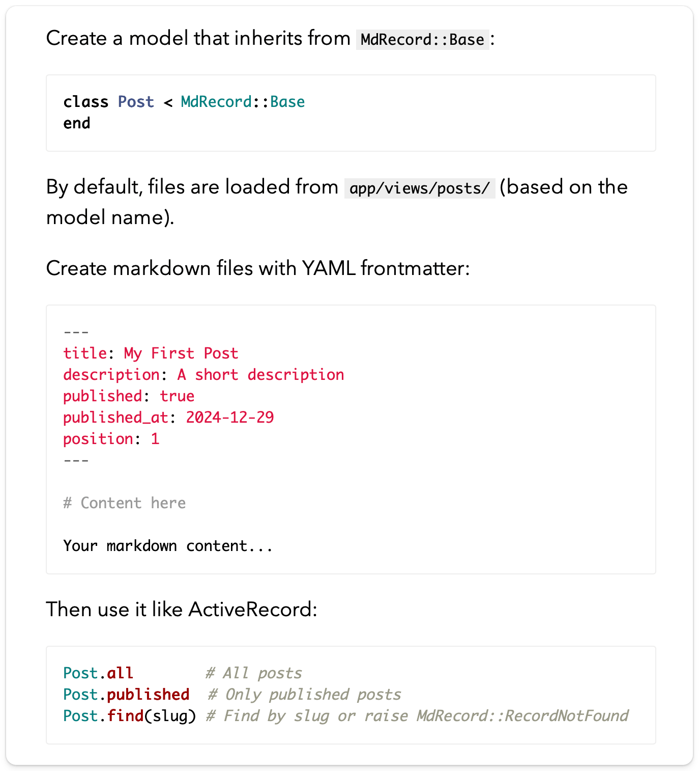 π Benito Serna published a new article about md_record β βFile-backed models for Rails. Similar to ActiveRecord but reads from markdown files with YAML frontmatterβ