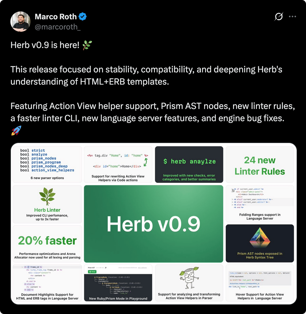 π Marco Roth announced a new version of Herb - read all the details at Whatβs new in Herb v0.9