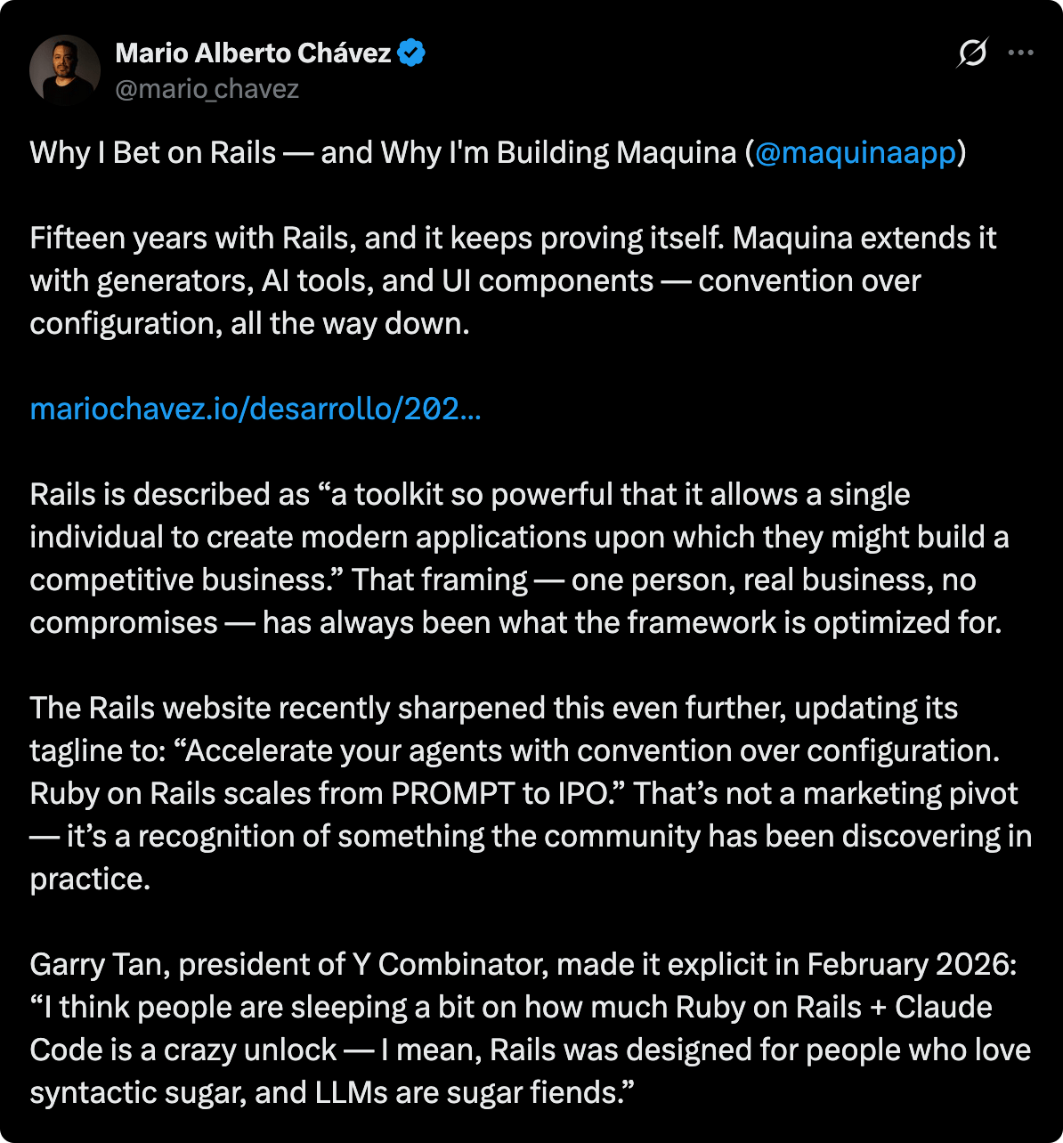 β€οΈ Mario Alberto ChΓ‘vez shared about why he strongly believes in Rails