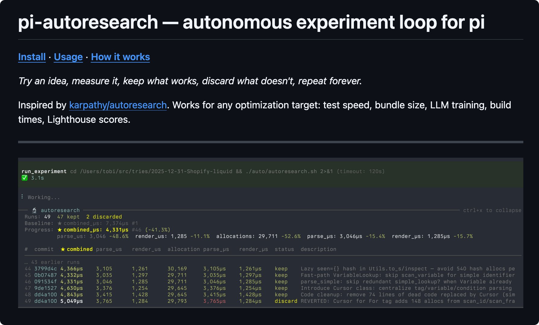 π€ Tobi Lutke open sourced /autoresearch plugin for pi