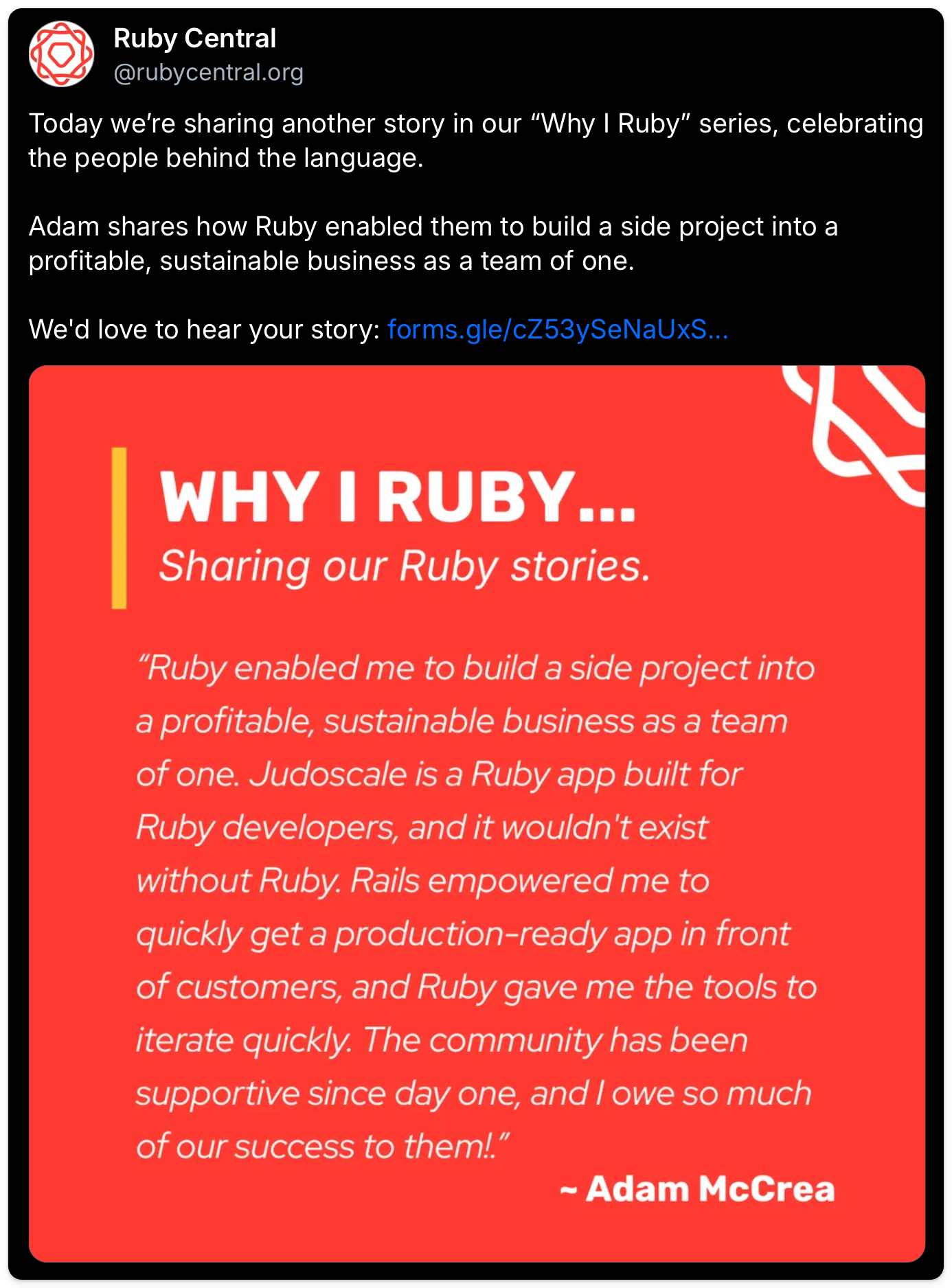 β€οΈ Ruby Central shared stories of Why I ruby β You can submit yours using this form