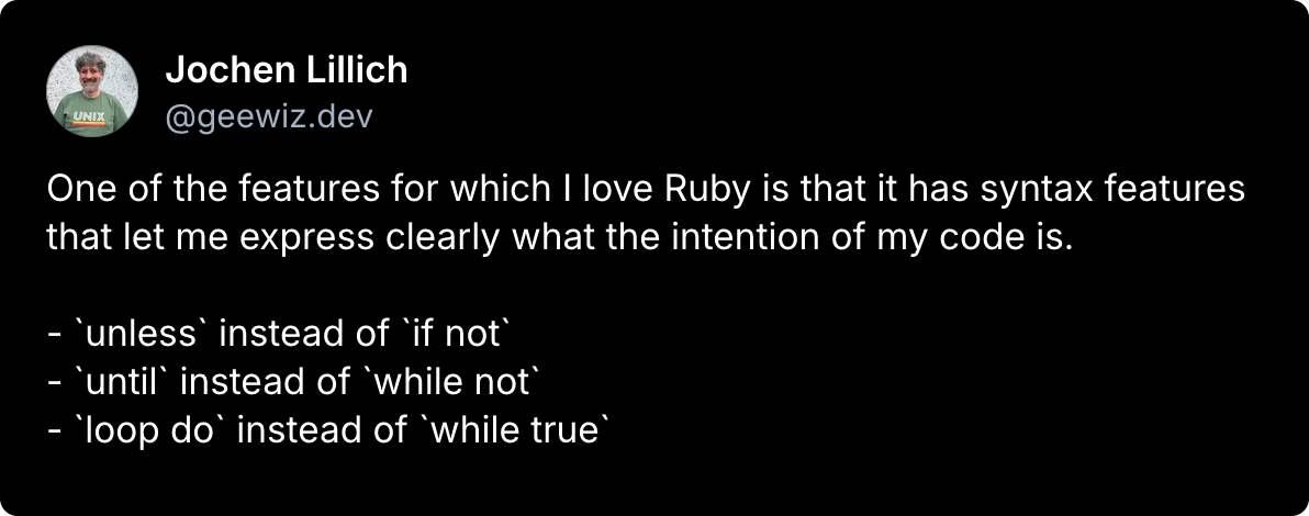 β€οΈ Jochen Lillich shared about how easily is to express what the intention of the code is in Ruby